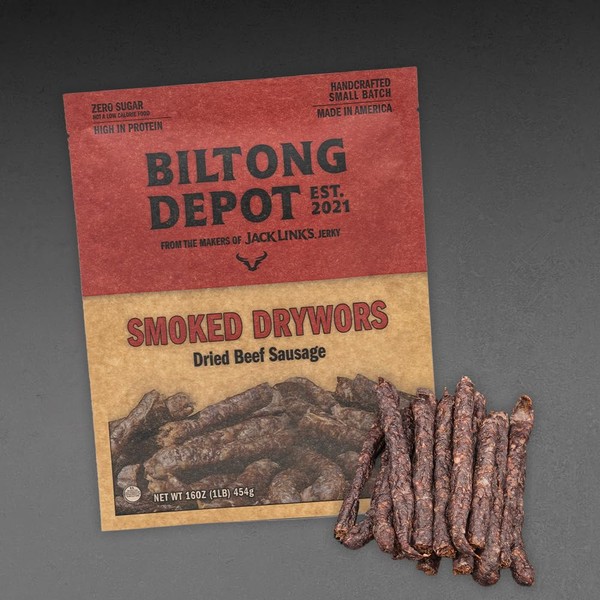 Biltong Depot - Smoked Droewors (1 lb) 16oz South African Droewors Beef Sausage Sticks Keto and Paleo Certified Air-Dried Sausages - Whole 30 Approved, No Sugar, Gluten Free, No Nitrates - Healthy and Natural Snacks