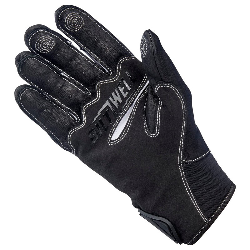 "Like other leather/textile hybrids on the sport bike grid, our Bridgeport glove features rugged construction and a racy silhouette. Supple goatskin leather, three-ply vented polyester, ballistic nylon, and CE-certified impact- and friction-zone reinforcement makes our most advanced three-season riding glove ready for business. Features: Supple goatskin leather palm, fingertips, thumb, and friction panels Flexible thermoplastic rubber wrist tab with molded impact protection Anatomically shaped synthetic suede palm panel with Lycra flex zone Comfortable two-way stretch laminated neoprene wrist panel Ballistic nylon finger, hand, and knuckle guard panels Conductive stitching in fingers and thumb lets you operate smart screens Lycra expansion panels in finger joints for added dexterity Padded high-impact plastic knuckle guard with three-ply vented panel Silicone traction logo on palm Molded plastic finger vents CE certified for recreational highway and off-road riding Package includes: ● 1 Biltwell Pair of Gloves"