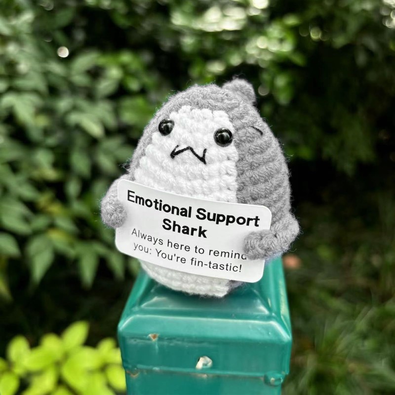 • Pocket Hugs: Pocket Hugs Positive Energy Grey Shark, this enchanting doll with positive energy is not only a collector's doll toy and a fun gift, but can also be used as a decoration for home, office and party. The cute knitted doll with positive energy comes in a bag and can be carried around.