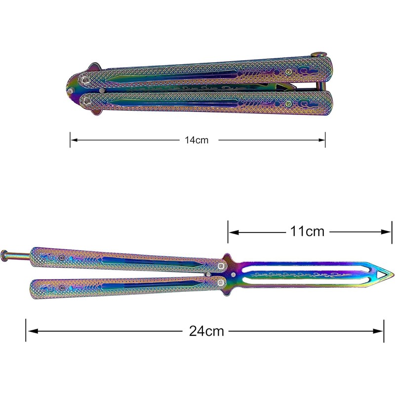 - INCREDIBLE DURABLE: Unlike the normal butterfly trainer, we use enhanced 404 stainless steel. The colors are even more stunning. Make sure your toys are the most outstanding.