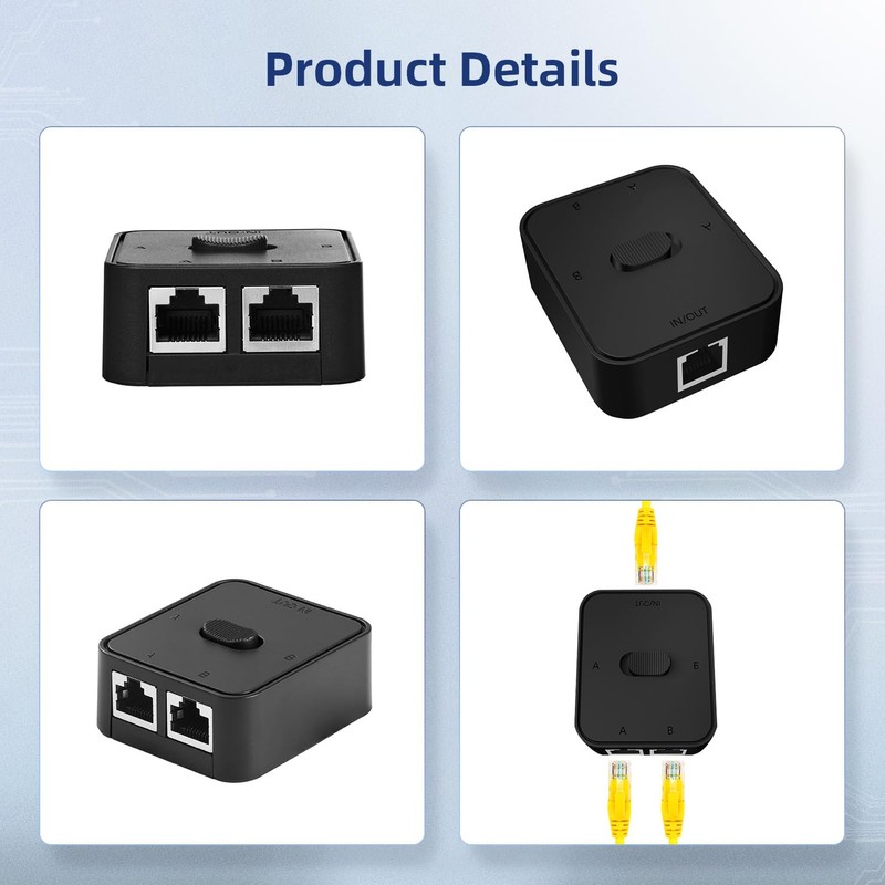 - 【Bidirectional Switcher】 Support bi-directional network switching, 1 Port in, A or B Port out; or A or B Port in, 1 Port out. Can be used to switch between different networks or devices **The A or B ports cannot work at the same time.**
