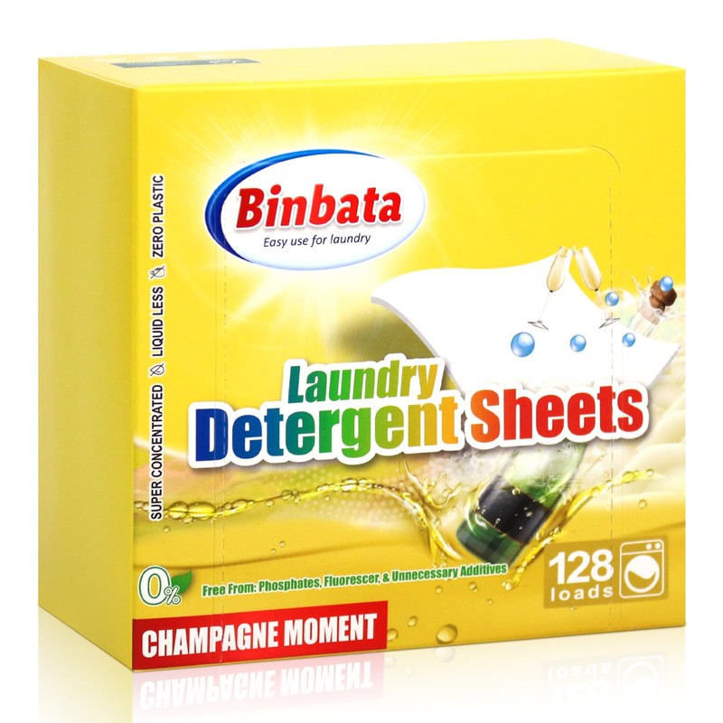 Binbata Laundry Detergent Sheets, Up To 128 Loads Champagne Scent Hypoallergenic Eco-Friendly, Biodegradable Plastic Free Liquidless Laundry Sheets Suitable for Sensitive Skin