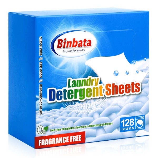 Binbata Laundry Detergent Sheets, Up To 128 Loads Hypoallergenic Eco-Friendly Unscented Biodegradable Plastic Free Liquidless Sheets Suitable for Sensitive Skin