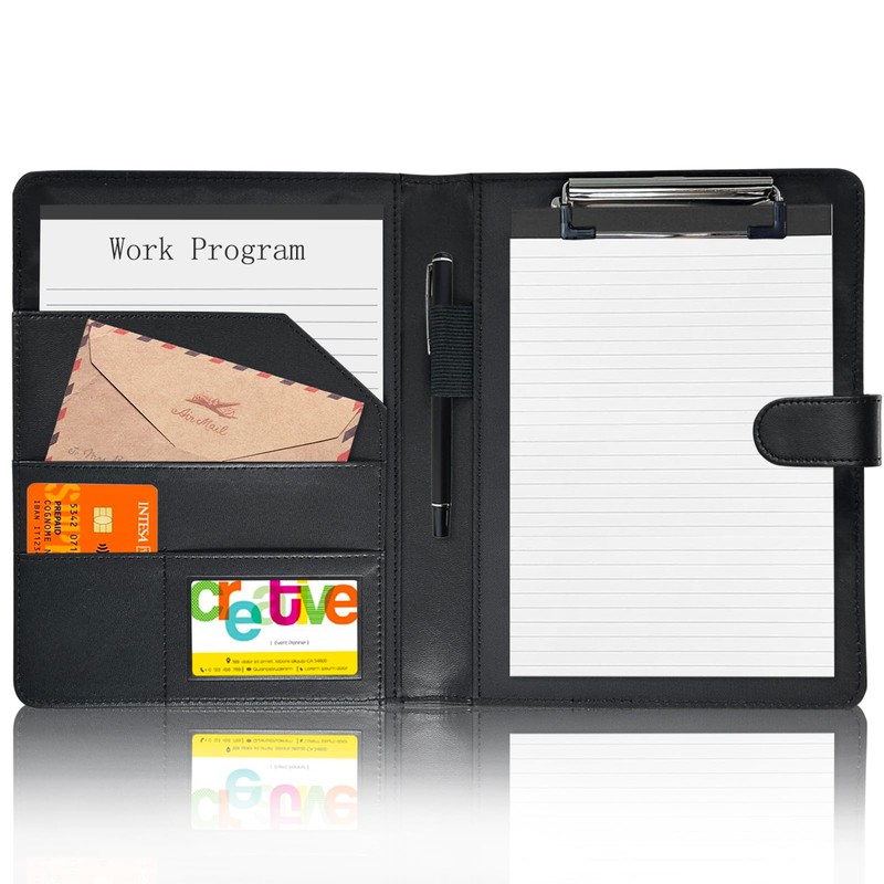 - 【MULTI-PURPOSE】This A5 conference folder is perfect for business meetings, interviews, daily attendance, class, lecture, art exhibitions, document storage, etc. Magnetic buckle design allows you to fold and unfold your A5 size writing instruments freely after use. It won't roll up like traditional writing instruments after pinching the notebook. Beautiful and practical