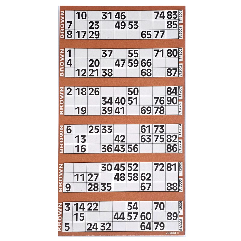 - 1-90 bingo ticket with serialised numbers. The sheets are not duplicated.