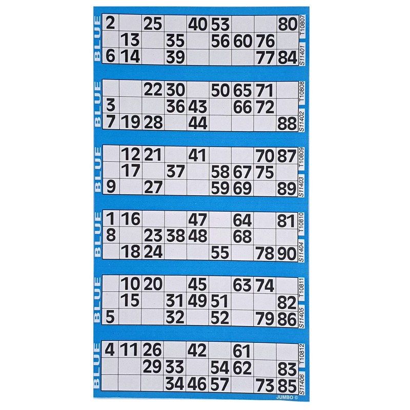 - 1-90 bingo ticket with serialised numbers. The sheets are not duplicated.