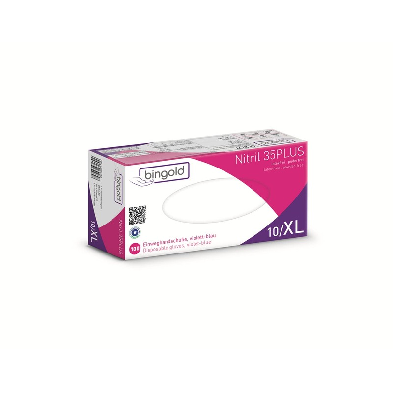 Bingold Disposable Nitrile 35Plus Gloves, X Large – Blue (10 x Pack of 100)