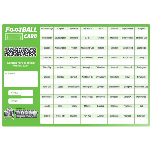 Bingosupermarket Football Fundraising Scratch Cards (80 Team) A5 Size