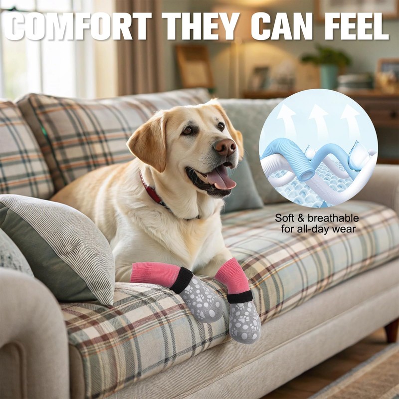 - DUAL-SIDED ANTI-SLIP GRIP: Features non-slip paw print grips on both sides of the socks, ensuring extra traction on smooth surfaces like hardwood or tile—even if the socks twist. Especially helpful for senior dogs or those with mobility issues to prevent slipping and sliding