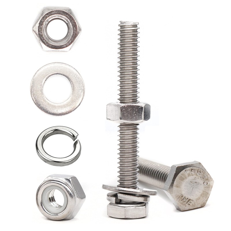 - [❤] Name: 1/4 Hex Bolts Hex Nuts Lock Nuts Spring Washers Flat Washers Kit; [❤]Material: 304 Stainless Steel ;