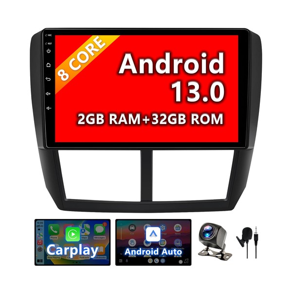 BINIZE Android 13 Touchscreen Car Stereo Compatible with Subaru Forester & Impreza 2008 2009 2010 2011 Wireless CarPlay Android Auto, Bluetooth GPS Navigation, AM/FM Mirror Link, Backup Camera