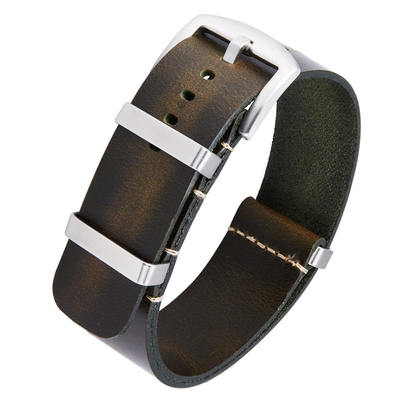 - 【Premium Material】Made of high quality crazy-horse oil-tanned leather, which is soft, retro, durable and skin-friendly; brushed stainless-steel buckle and 3 matching keeper loops that hold your watch securely on your wrist.