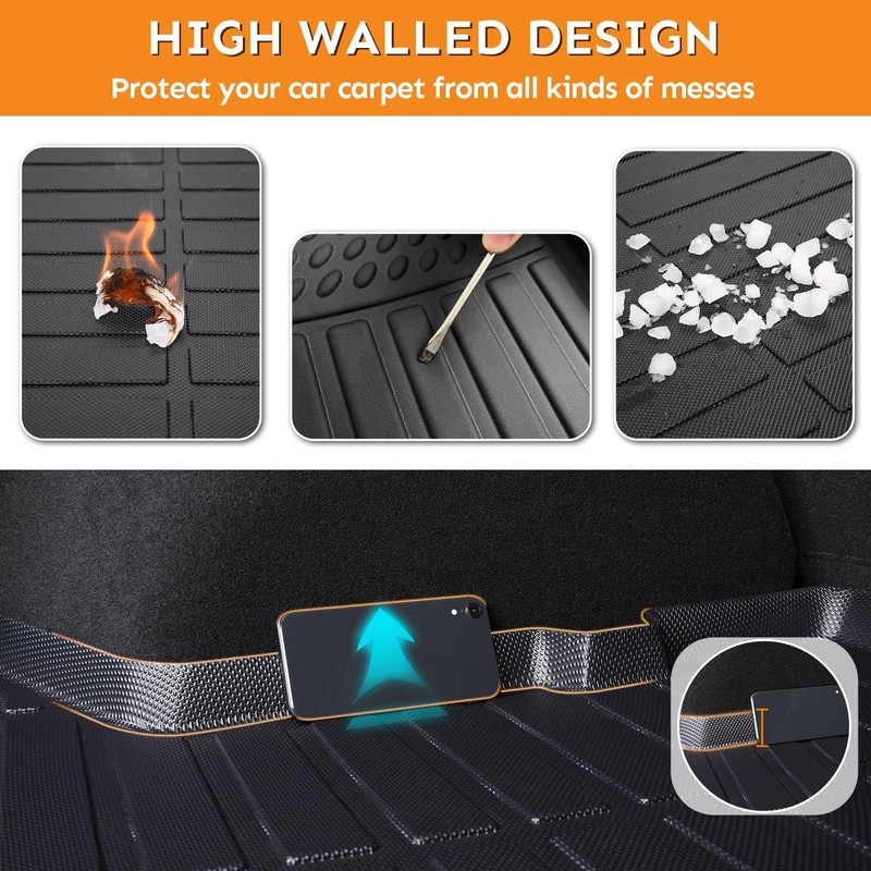 - ALL WEATHER/SEASON: These car Leaf 2022 floor mats are designed with a high edge that help contain rain, snow, muddy fallen leaves, food debris, liquids or debris, giving your car perfect protection in all weather and keeping your car clean. Binmotor vehicles floor liners are designed to stand up to the most extreme weather conditions. Multiple tests prove that it won't crack, curl or break down.