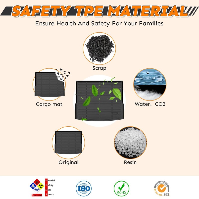 - TPE MATERIAL: Floor mats fits for Leaf 2024 are made of Thermoplastic Elastomer(TPE) materials, which makes car floor mats both soft and durable. This kind of high quality materials even in extrem weather.