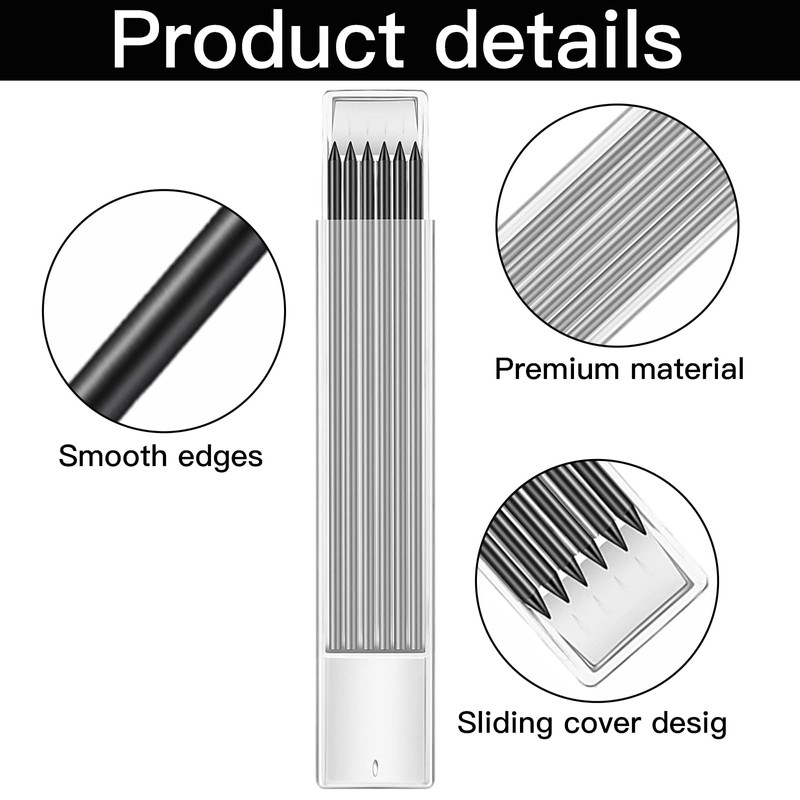 - [Langlebig wasserdicht] Hochwertiges Graphit, harte 2,8 mm HB Bleistift Mine, mit guter Zähigkeit und hoher Härte, nicht leicht zu brechen. Es kann leicht mit harten, rauen Oberflächen wie Holz, Metall usw. umgehen, wasserdicht und feuchtigkeitsdicht, stabil und schwer zu löschen