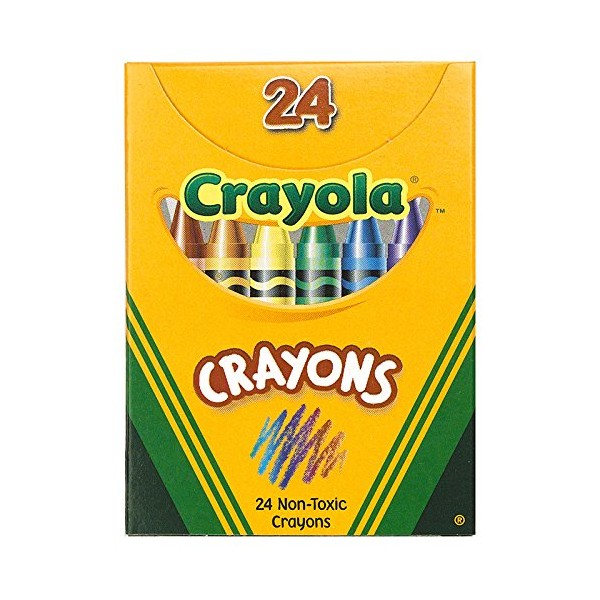 Crayola crayons provide color-loving kids with 24 hues that feature vibrant, long-lasting color. Amp up school projects and artistic endeavors with high- quality results. The variety of bright colors in this pack invites imaginative expression. Kids will love to use these vividly colored, durable crayons at home or at school. Small enough to fit in a book bag, This portable box is large enough to hold a wide variety of colors. In addition to classic Crayola colors, this 24-Count box contains fun shades so you can mix and match to create colorful drawings and bold signs. Crayola crayons can last 35 percent longer, based on square foot coverage against key competitors. Children can enjoy drawing more pictures and filling coloring books even longer. Each box includes 24 crayons.