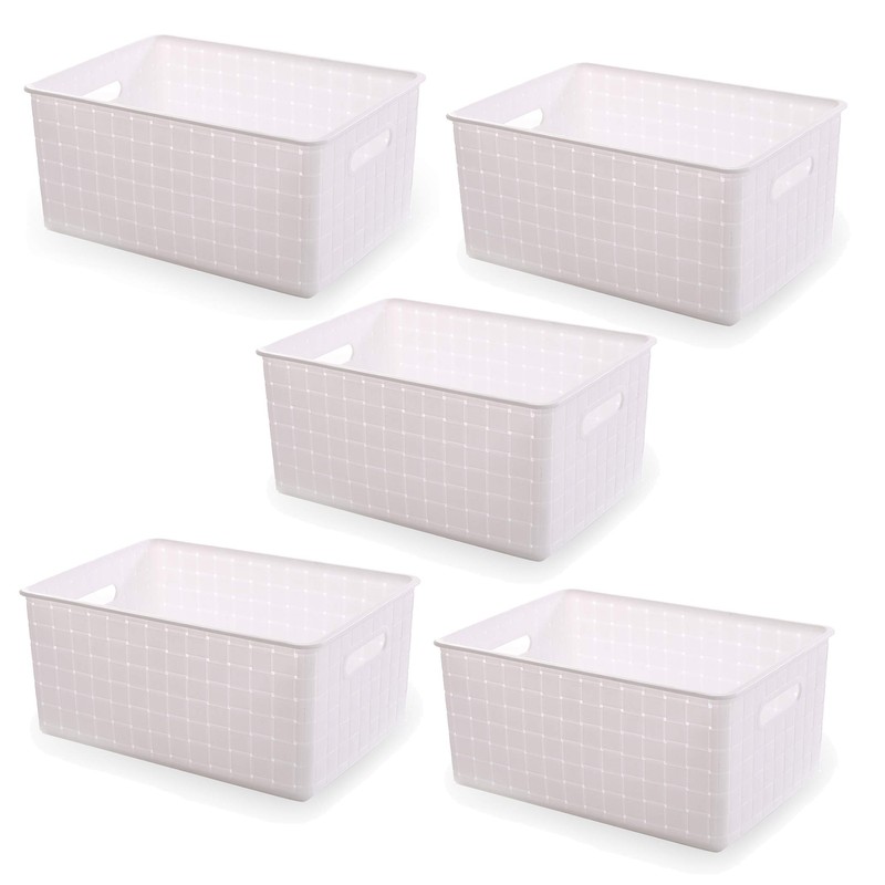 BINO Plastic Basket, Small White, 5 Pack - Rectangular Cabinet Organizer, Mul...