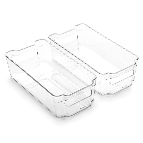 BINO | Stackable Storage Bins, Medium - 2 Pack THE STACKER COLLECTION Clear Plastic Built-In Handles BPA-Free Containers for Organizing Kitchen Pantry Multi-Use Organizer Bins