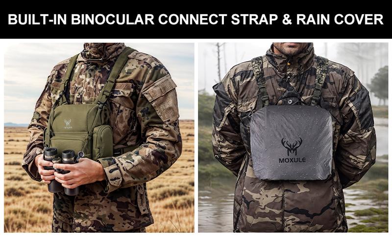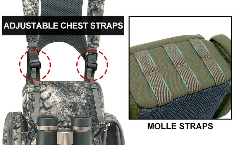- We added molle bands when you are still struggling with traditional bino bags not having enough space to carry small items. MOXULE binocular harness pack is a great solution to all of this.