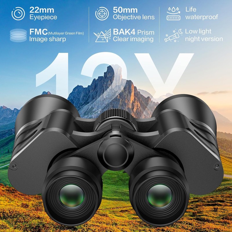 Binoculars 12x50 for Adults and Kids Compact Binoculars with Clear Low Light Version Large Eyepiece Waterproof Durable & Clear Binoculars for Bird Watching Hunting Travel Theater Concerts
