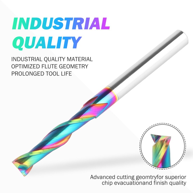 - APPLICATION. This CNC End Mill Router Bits is perfect for soft woods, hard woods, Plywood, laminate, OAK, MDF, hard woods and aluminum. Perfect for 2D/3D wood carving or engraving. CNC spiral router end mill bit are Suitable for side milling, end milling, finish machining.