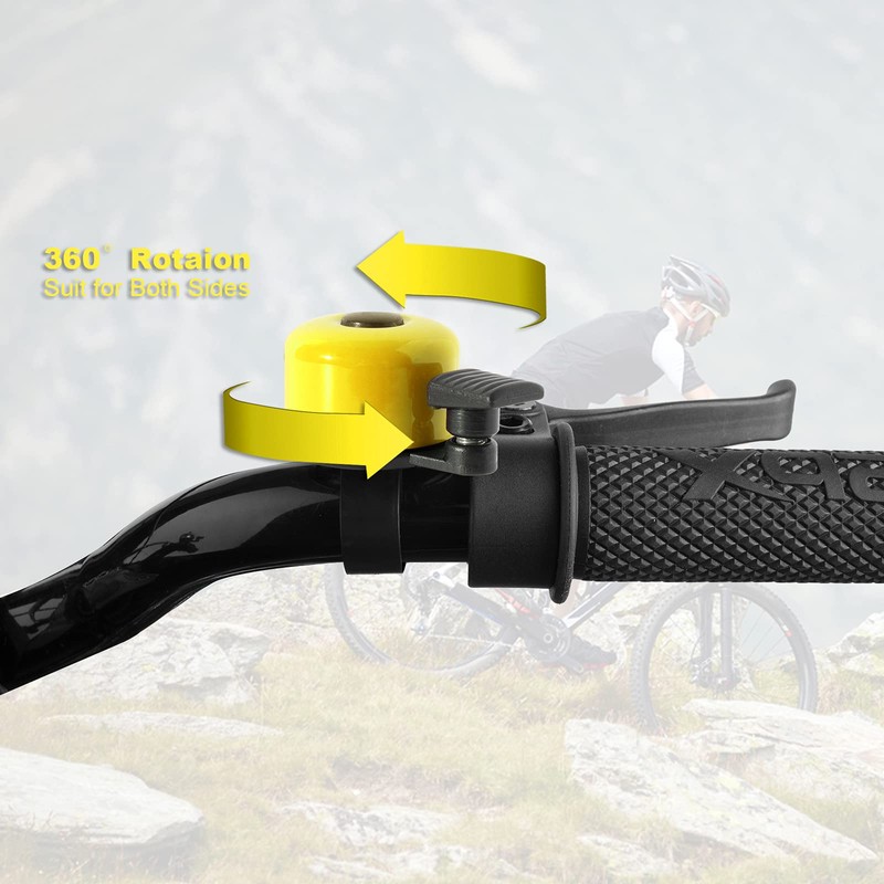 - Mount for most handlebars diameter 22.2-25.4mm/0.87-1in. It can be easily installed on bicycles, road bikes, MTB, BMX, Kids Bike, scooter etc. The handle of the bell can be rotated 360 degrees, so you can install one on one side for both hands use.