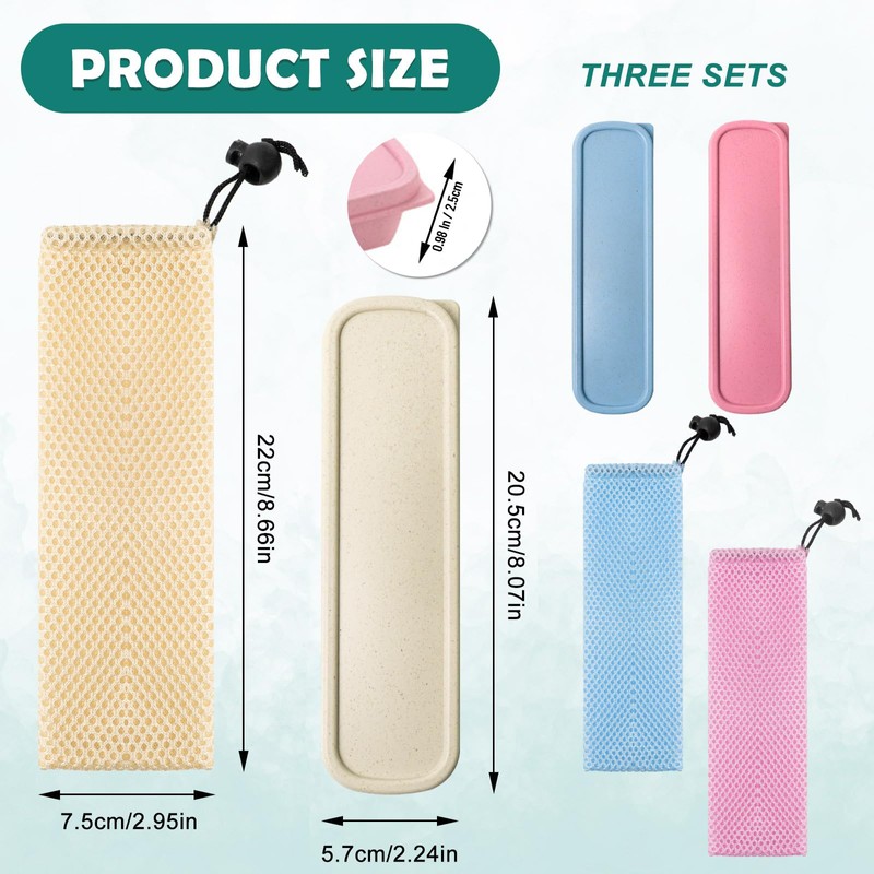 3 Pcs Utensil Travel Case with 3 Pcs Portable Travel Mesh Bag