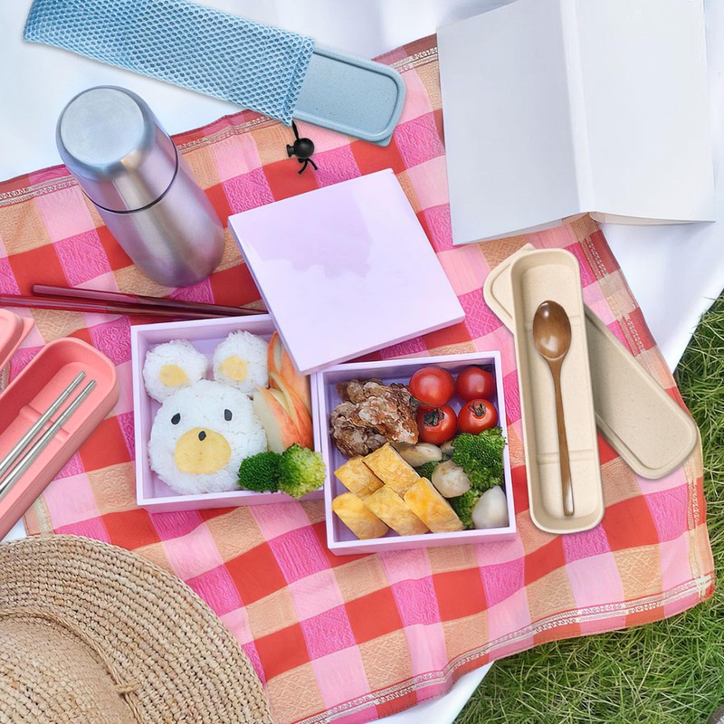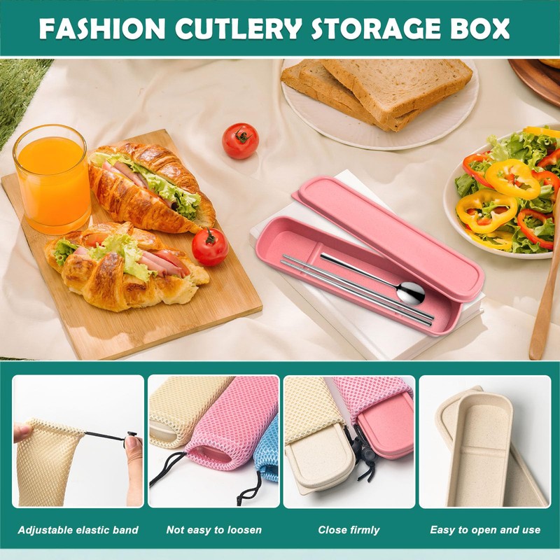 • Material and Size: The utensil case for lunch box is made of PP plastic and wheat straw, which can be reused and is very strong and not easily damaged. The mesh bag is made of polyester fiber to protect the chopstick box from damage. The size of the mesh bag is 2.95x8.66 inches /7.55x22cm, and the size of the box is 2.24x8.07 inches /5.7x20.5cm.