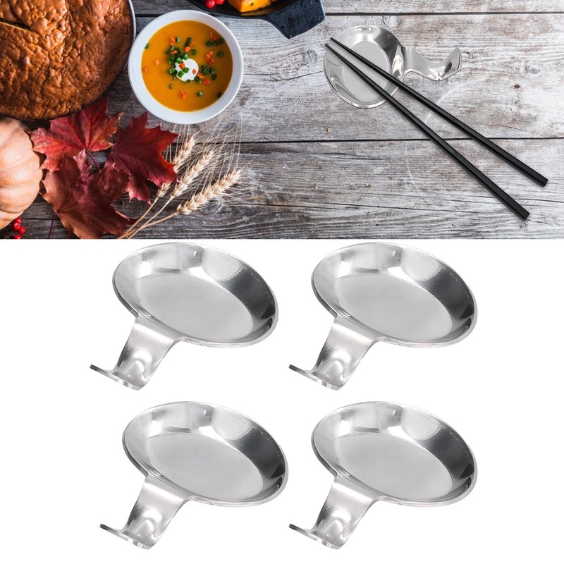 Binyalir Multifunctional Spoon Rest, 2 Purpose 4Pcs Spoon Rest Chopsticks Rest Holder Stainless Steel Compact for