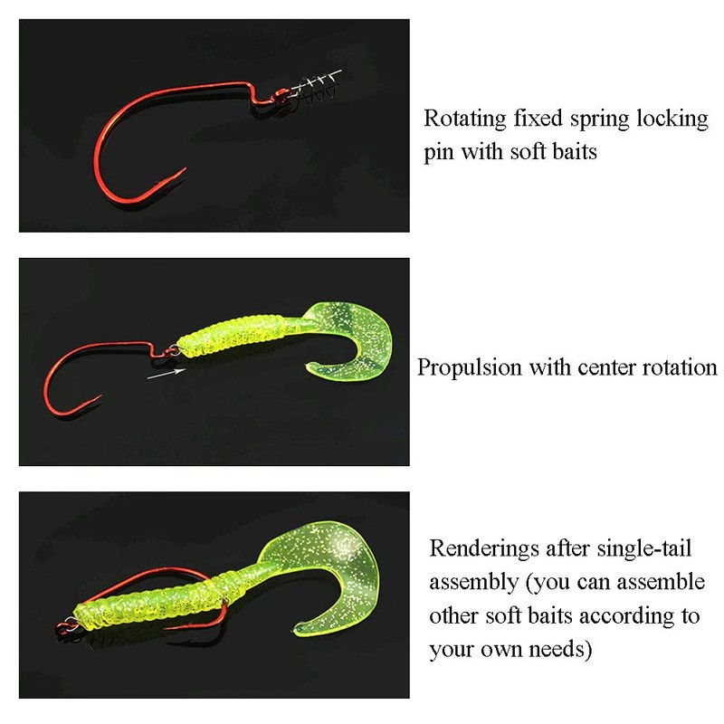 - Hold large swim baits well.The great centering pin spring can keep soft plastics from coming off too soon.The spiral is long enough to secure swim baits.Will not let the bait wander around like a wounded bait fish.Even if the bait flukes,worms,swimming bait,and biological bait do slip off,it will not be torn.