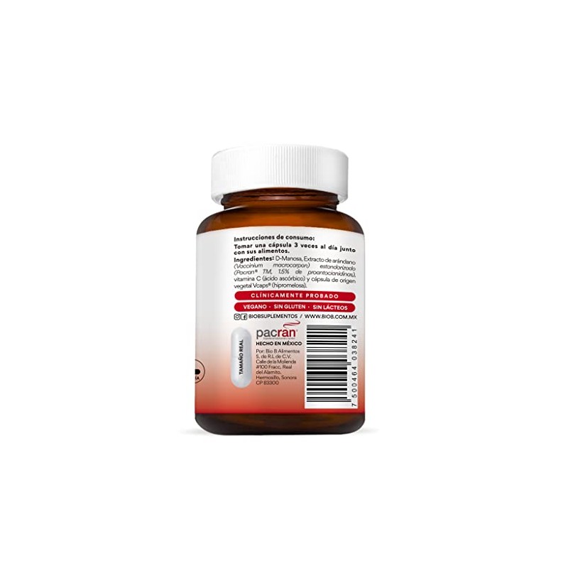 BIO B | Extracto de Arándano 60 cápsulas veganas con D-Manosa | Salud Urinaria | Extracto de Arándano Pacran® | D manosa y Vitamina C.