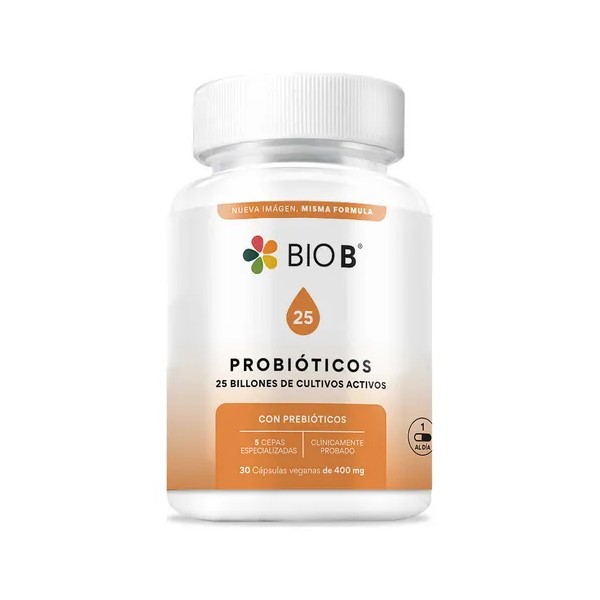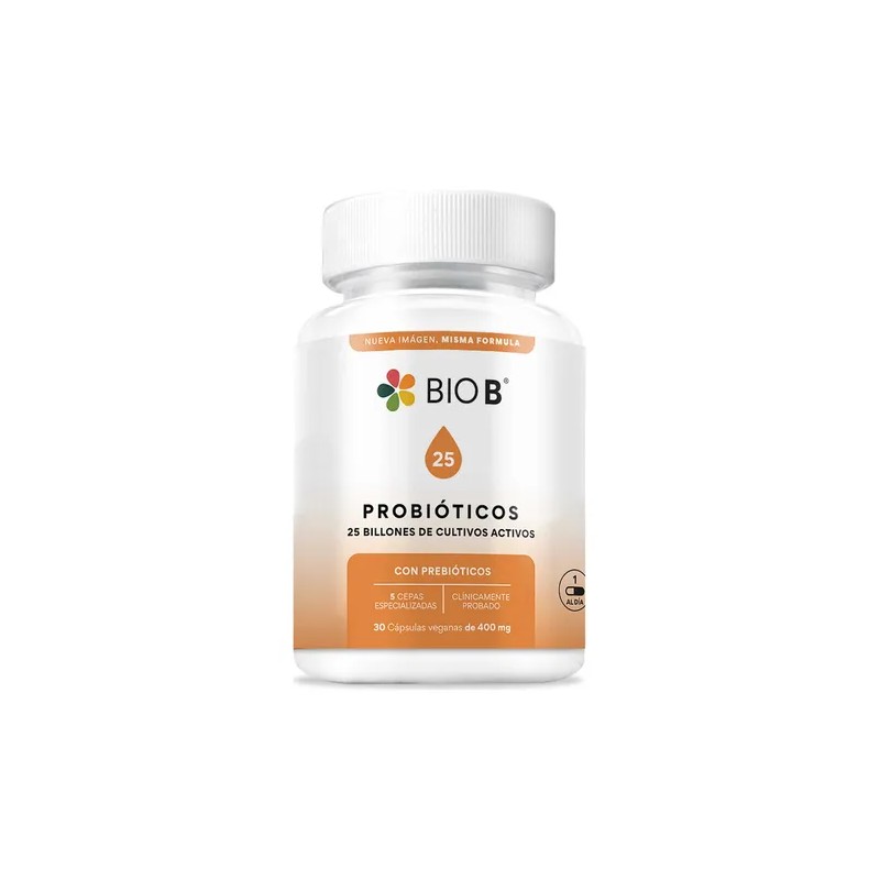 Título: BIO B Probióticos 25 billones UFC + prebióticos | 30 cápsulas veganas