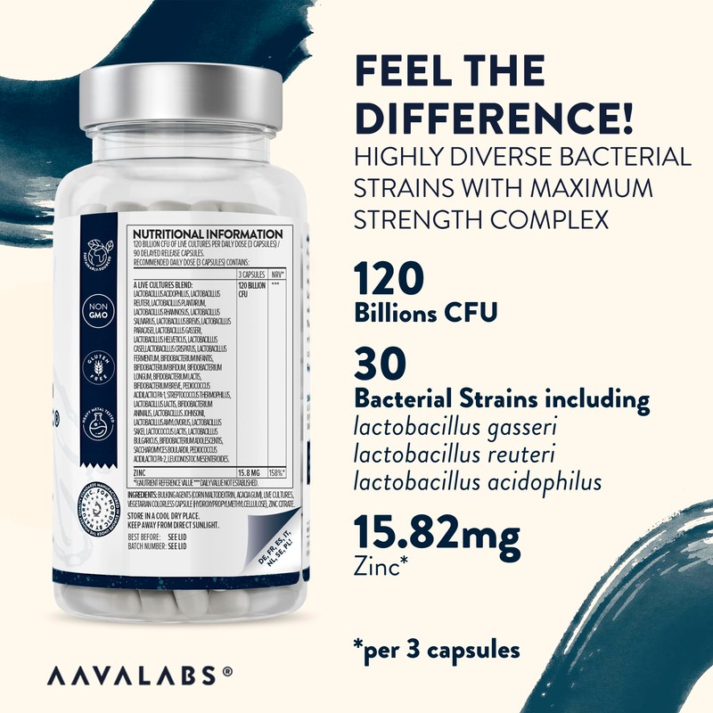 - ➤ FULL SPECTRUM BLEND: Our mission at AAVALABS was to create the most complete bacterial support complex on the market today and with Premium Probiolac, we did exactly that. Each capsule contains 30 different strains of good bacteria that each have their own unique function in the gut. And at a massive 120 Billion CFU per daily serving (3 capsules), our latest blend is 2x as potent as our original formulation.