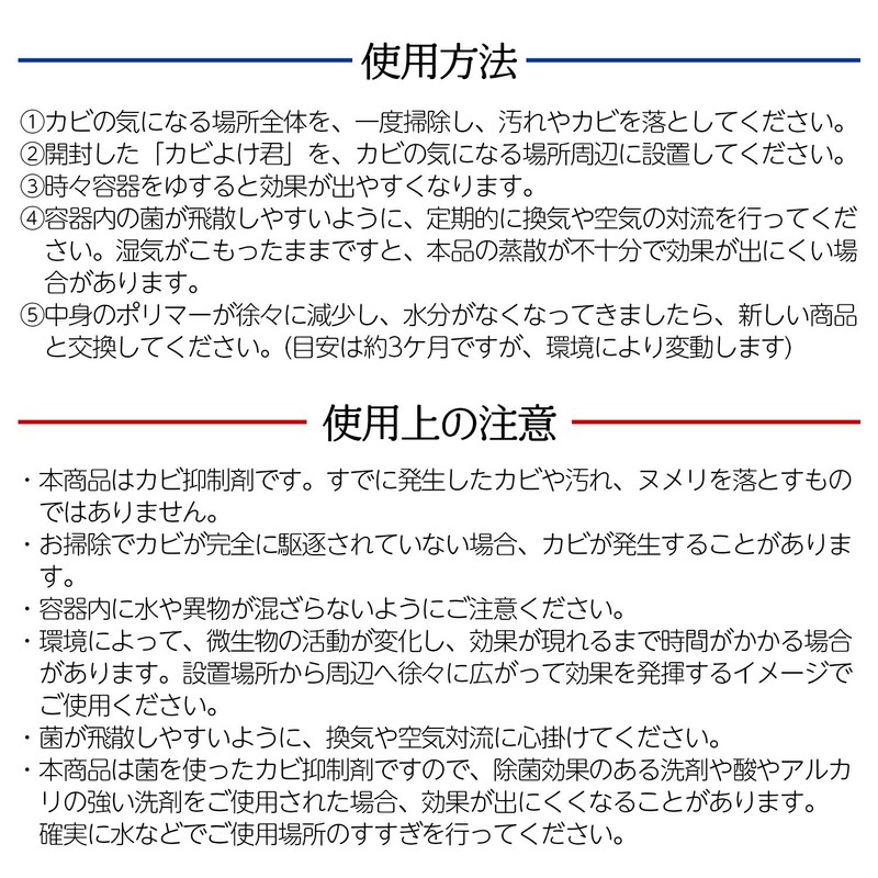 - After cleaning, simply open the seal and place it. OYK bacteria scatters around the surroundings and eats the nutrients of mold, so it suppresses mold (effective for about 3 months)