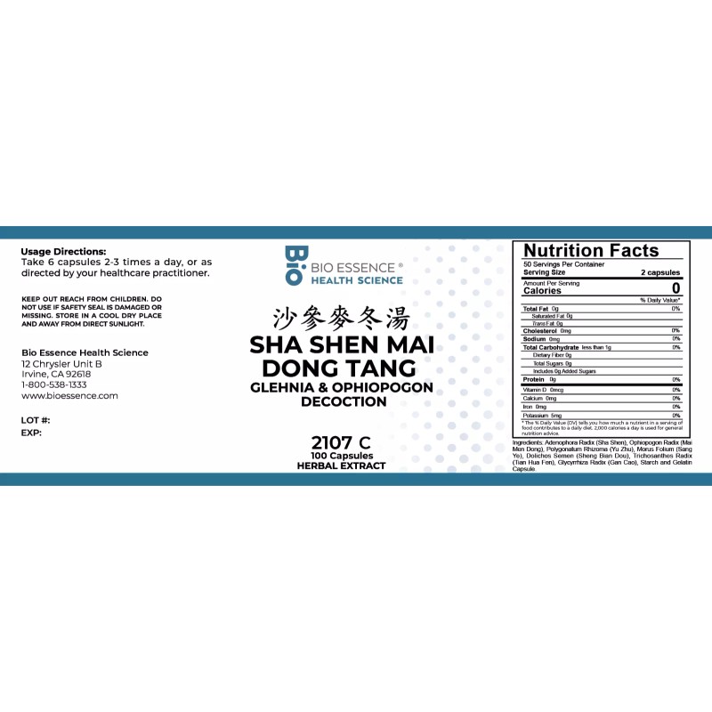 Bio Essence Health Sicecce 2107C Sha Shen Mai Dong Tang/Glehnia & Ophiopogon Decoction 100 Caps (2Bottles)