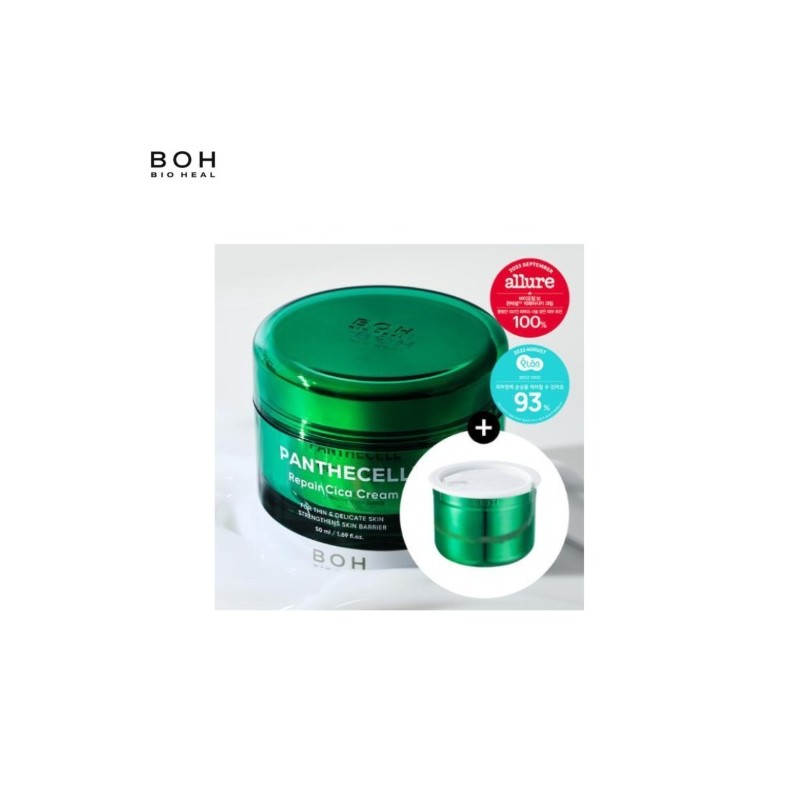 The BIO HEAL BOH Panthecell Repair Cica Cream 50ml*2ea is a double-size set of intensive soothing moisturizer formulated with panthenol and centella asiatica extract.