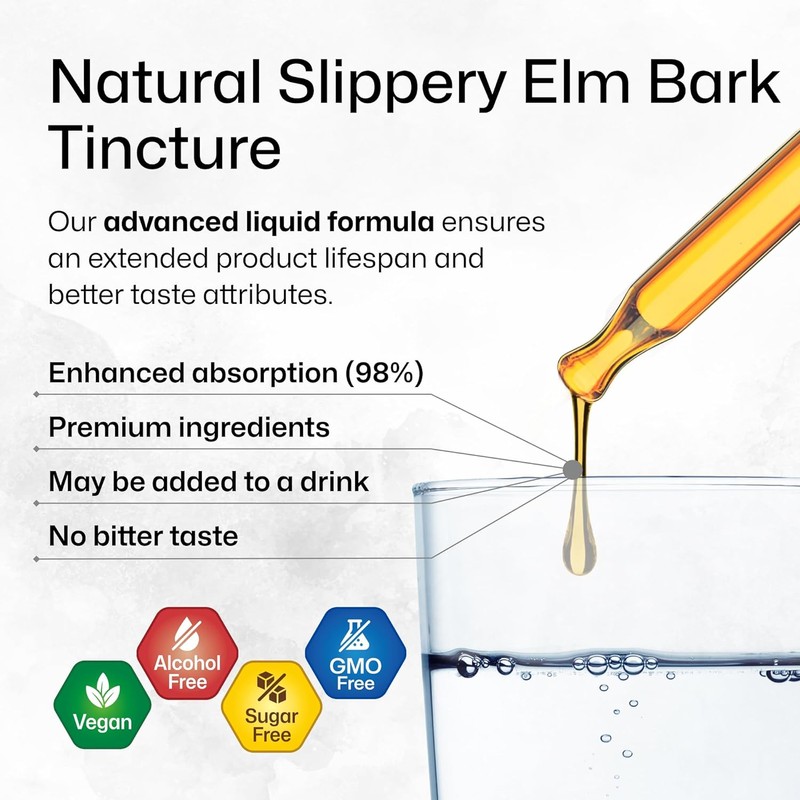 - General Wellness Support - These herbal drops are made from the bark of organic slippery elm (Ulmus rubra), a plant known for its rich nutritional content. Take these slippery elm extract drops and support your overall wellness.