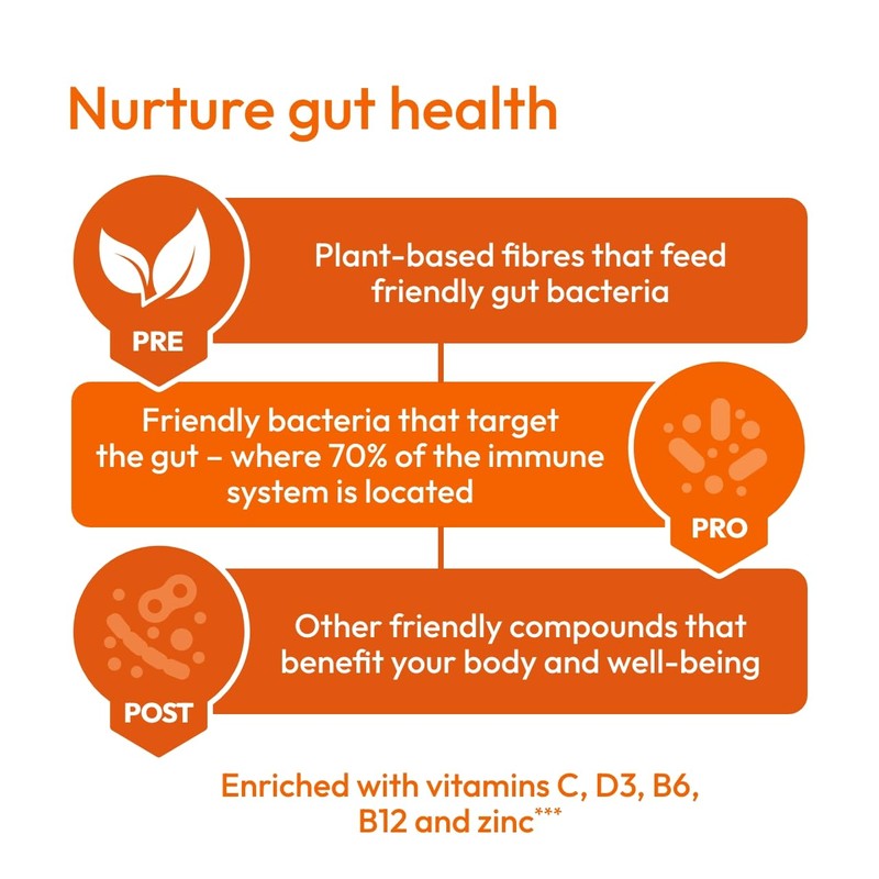 • Unique pre + pro + post formula: the UK's 3-in-1 biotic gummies with multivitamins and scientifically researched strains