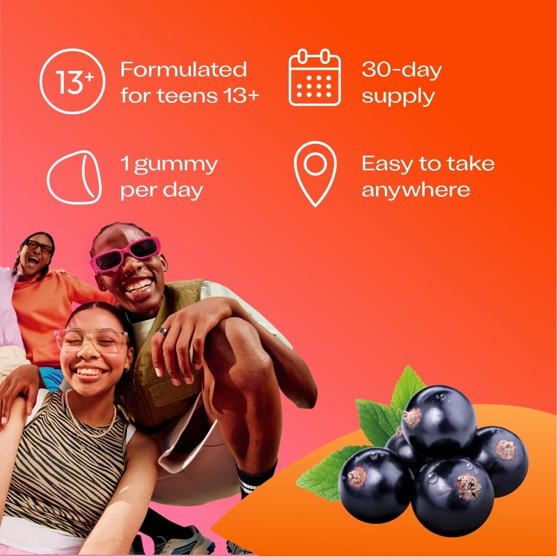 • Easy to take: for teenagers aged 13+, just take one gummy daily at home or on-the-go