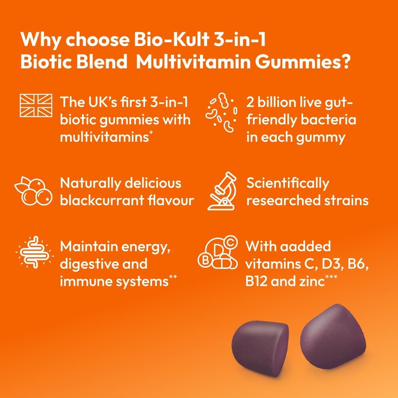 Bio-Kult 3in1 Biotic Blend Probiotic Gummy with Multivitamins, for Teens 13+,...
