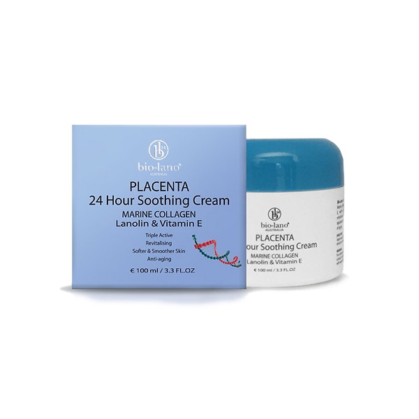 Bio-Lano Placenta 24 Hour Soothing Cream Marine Collagen Lanolin & Vitamin E 100mL