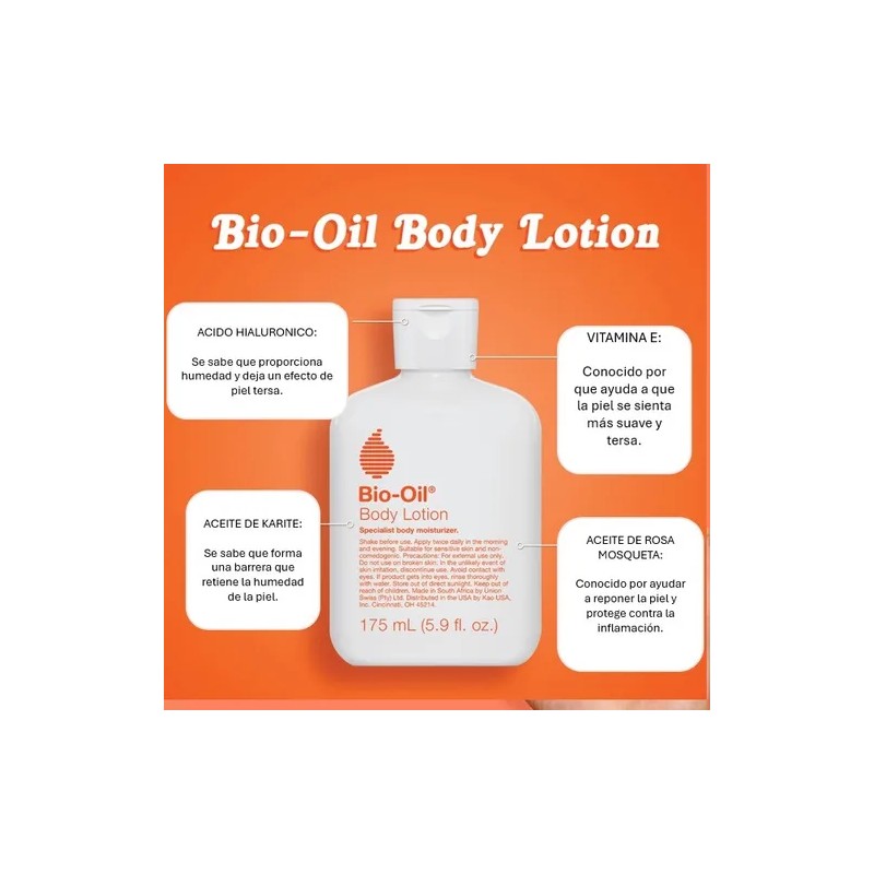 🧴 La loción corporal Bio-Oil de 175ml complementa este tratamiento intensivo con una textura ultraligera, de rápida absorción y con más del 60% de aceites humectantes. Esta fórmula hidrata intensamente sin dejar sensación grasosa, aportando elasticidad y luminosidad a la piel. 🌞💦