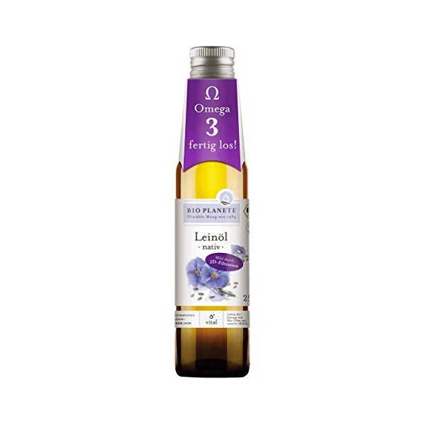 Flavour: Storage and usage instructions: Store at room temperature and protect from light. After opening, store in the refrigerator. Use within 3 months. Processing: first cold pressing. Rich in omega-3 fatty acids. Thanks to our 3D filtration process, bitterness is naturally removed from the oil. Mild-nutty in taste, it goes perfectly with quark. Under protective atmosphere, nitrogen is filled into a sun protection bottle. Processing/preparation: the oil is best enjoyed on quark with jacket potatoes and on delicate vegetables. A Budwig cream according to Dr. Johanna Budwig can also be produced excellently. Certification/en The Vegan Society German State Organic Seal EU Organic Seal