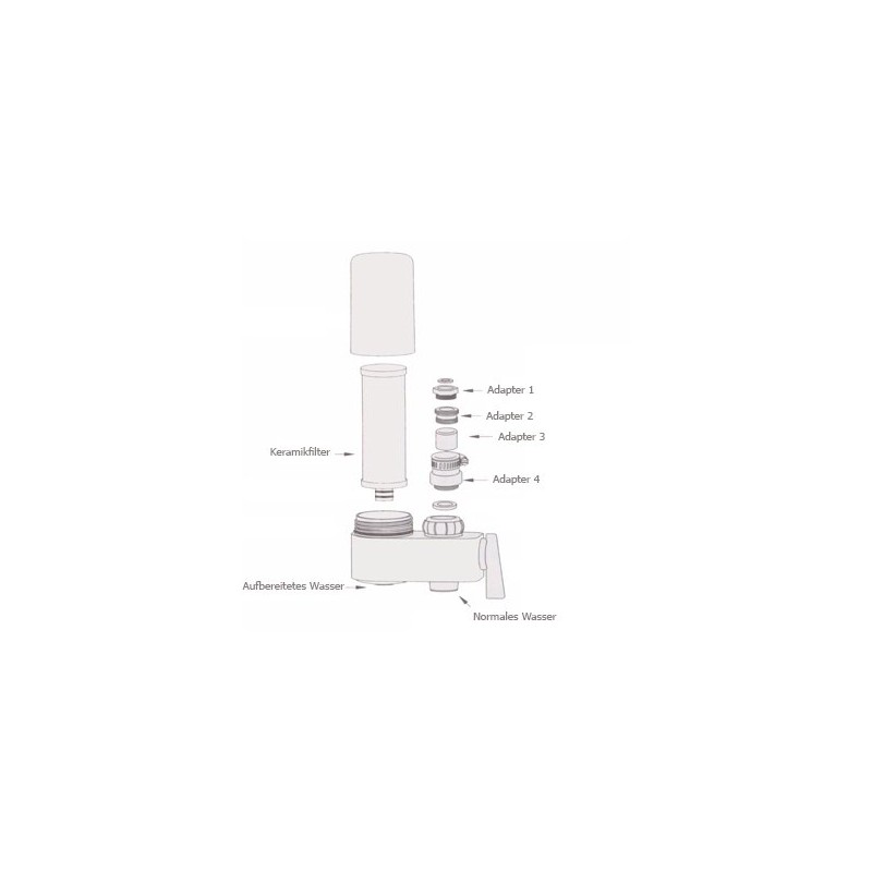 - Easy installation without tools, compatible with standard taps. The set includes various adapters for installation. If you are missing a suitable adapter, we will of course deliver it free of charge.