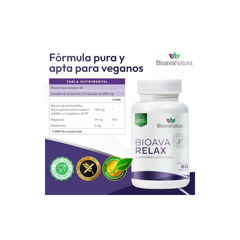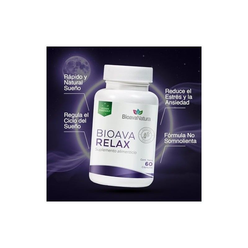 BIOAVA RELAX Suplemento Natural para Dormir con Melatonina, Magnesio, GABA y 5-HTP Reduce Estrs, Ansiedad e Insomnio Sueo Profundo sin Somnolencia