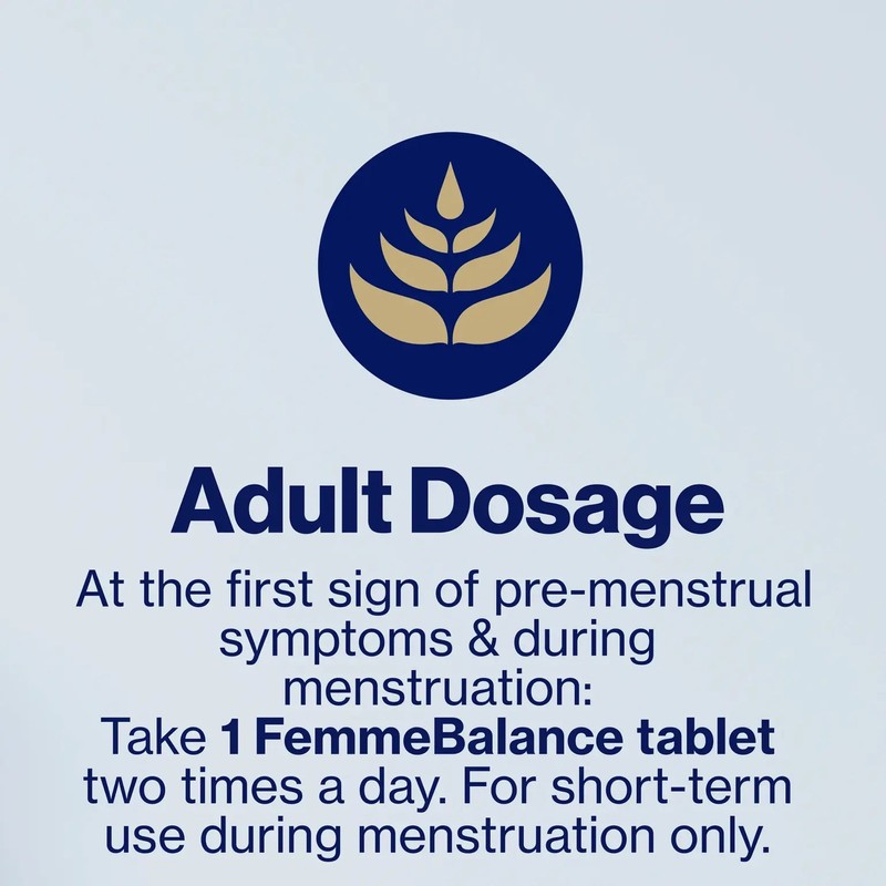 FemmeBalance features peony which is used in traditional Chinese medicine (TCM) to relieve menstrual cycle irregularity. Vitamin B6 maintains healthy female hormonal balance, relieves symptoms of premenstrual tension including mood swings, and temporarily relieves mild fluid retention. Licorice is used in traditional Chinese medicine as an antispasmodic and to relieve abdominal pain and discomfort.
