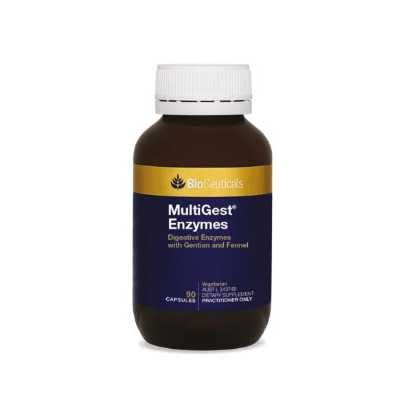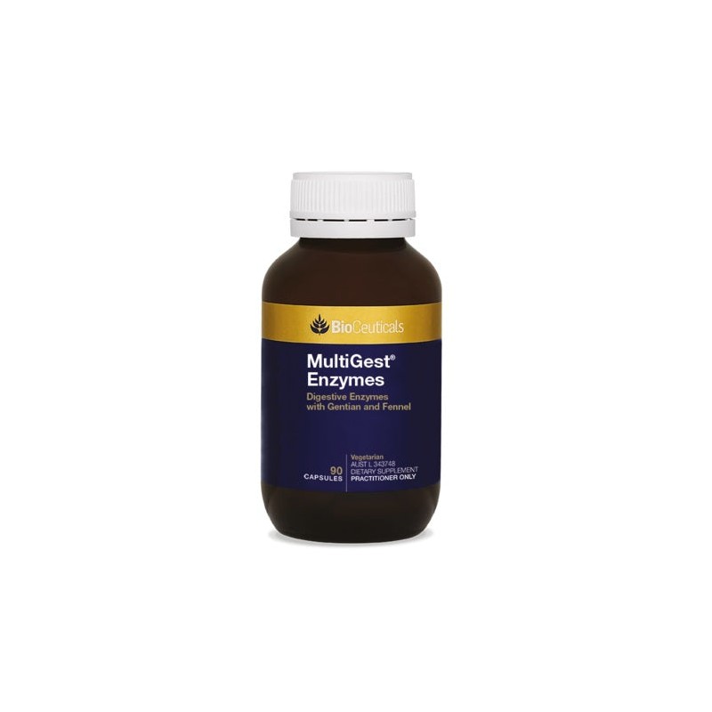 MultiGest® Enzymes combines plant-derived enzymes with lactase assisting in the digestion of lactose and bromelains aiding in the digestion of proteins. Gentian has been traditionally used in western herbal medicine (WHM) to stimulate gastric secretions, relieve loss of appetite and promote healthy digestive system function. Gentian and fennel have been traditionally used in WHM to relieve digestive discomfort and the symptoms of indigestion such as bloating. Fennel has also been traditionally used in WHM to relieve flatulence.