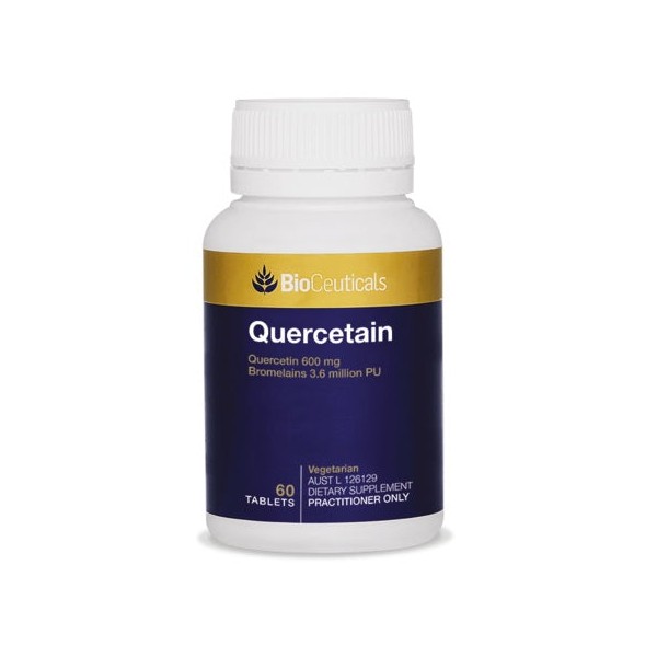 Quercetain contains quercetin to reduce symptoms of mild allergies and added bromelains to relieve inflammation. It also acts as an antioxidant to reduce the formation of free radicals in the body. Bromelains can act as an analgesic.