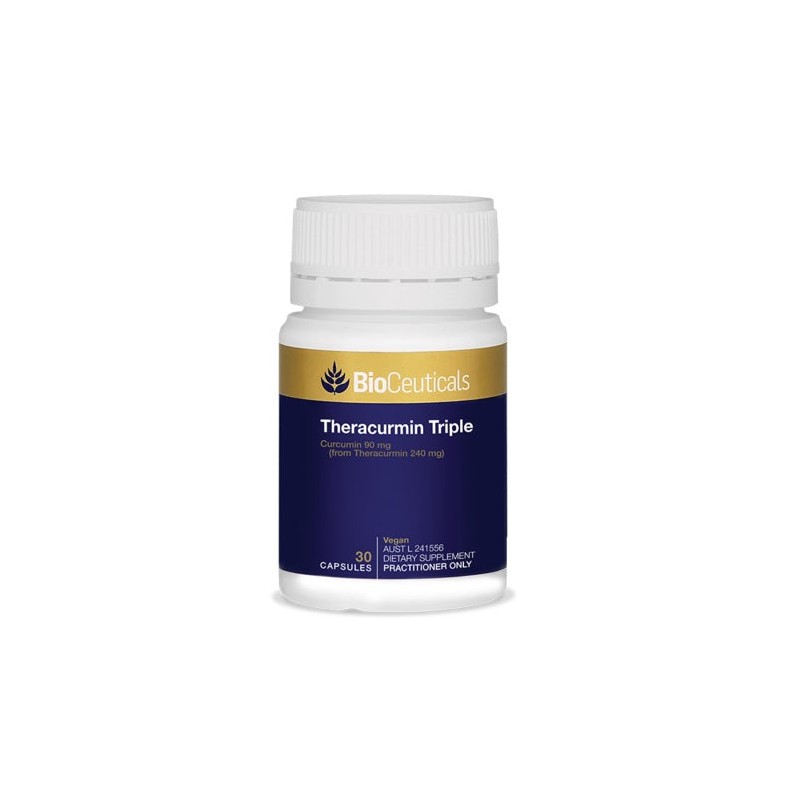 Theracurmin Triple is a high dose, highly bioavailable form of curcumin. One capsule contains a formulated form of curcumin, Theracurmin, providing the bioequivalence of 2430 mg of common, unformulated curcumin. Curcumin has demonstrated antioxidant and anti-inflammatory properties. Theracurmin Triple aids in relieving the symptoms of mild osteoarthritis including decreasing mild joint pain and swelling. Theracurmin also supports gallbladder function.