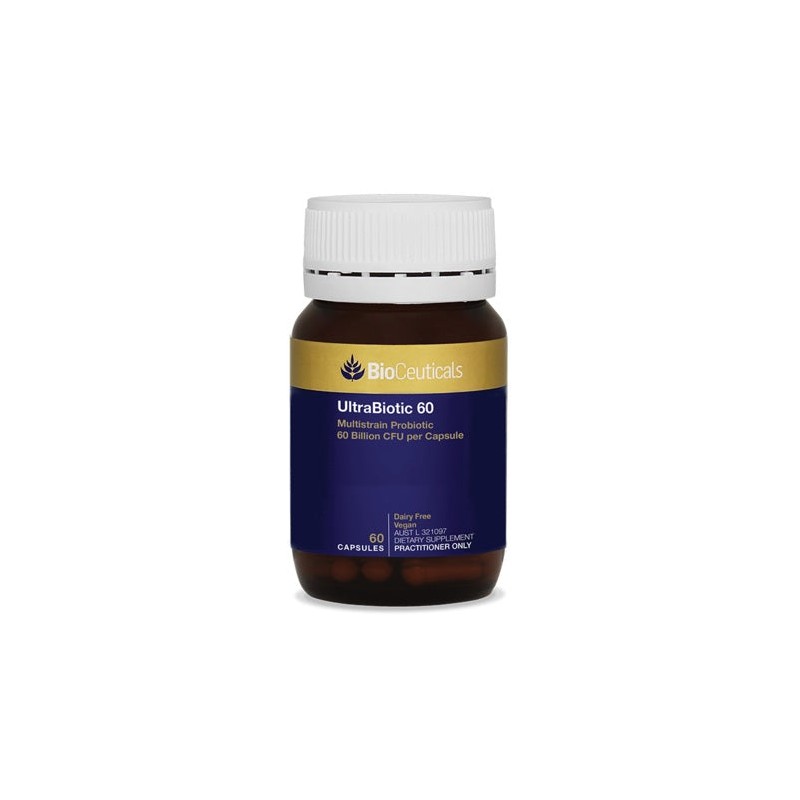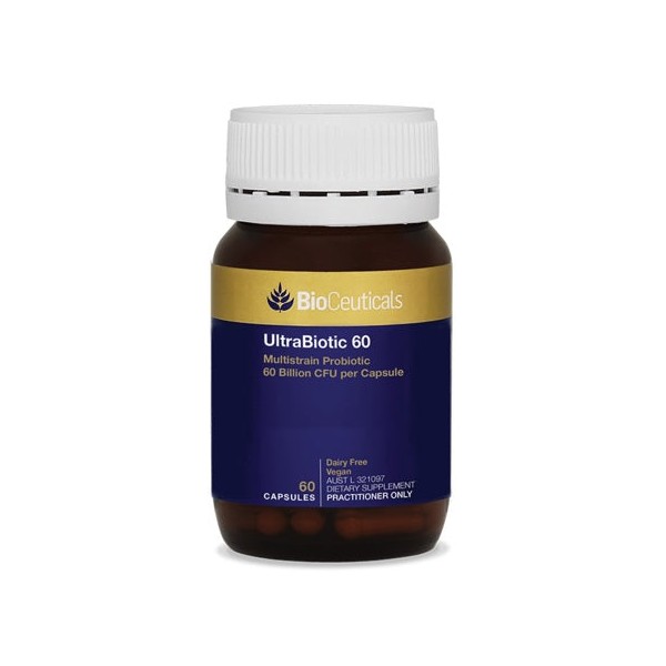 UltraBiotic 60 contains probiotics, including clinically trialled Lab4 strainsL. acidophilus (CUL21 + CUL60), B. animalis ssp. lactis (CUL34), B. bifidum (CUL20), that support digestive system health and function, relieve abdominal bloating and help maintain beneficial gut flora including during antibiotic use. Streptococcus thermophilus aids in the digestion of lactose. UltraBiotic 60 contains Lab4 strains that are shown to relieve symptoms of medically diagnosed irritable bowel syndrome.